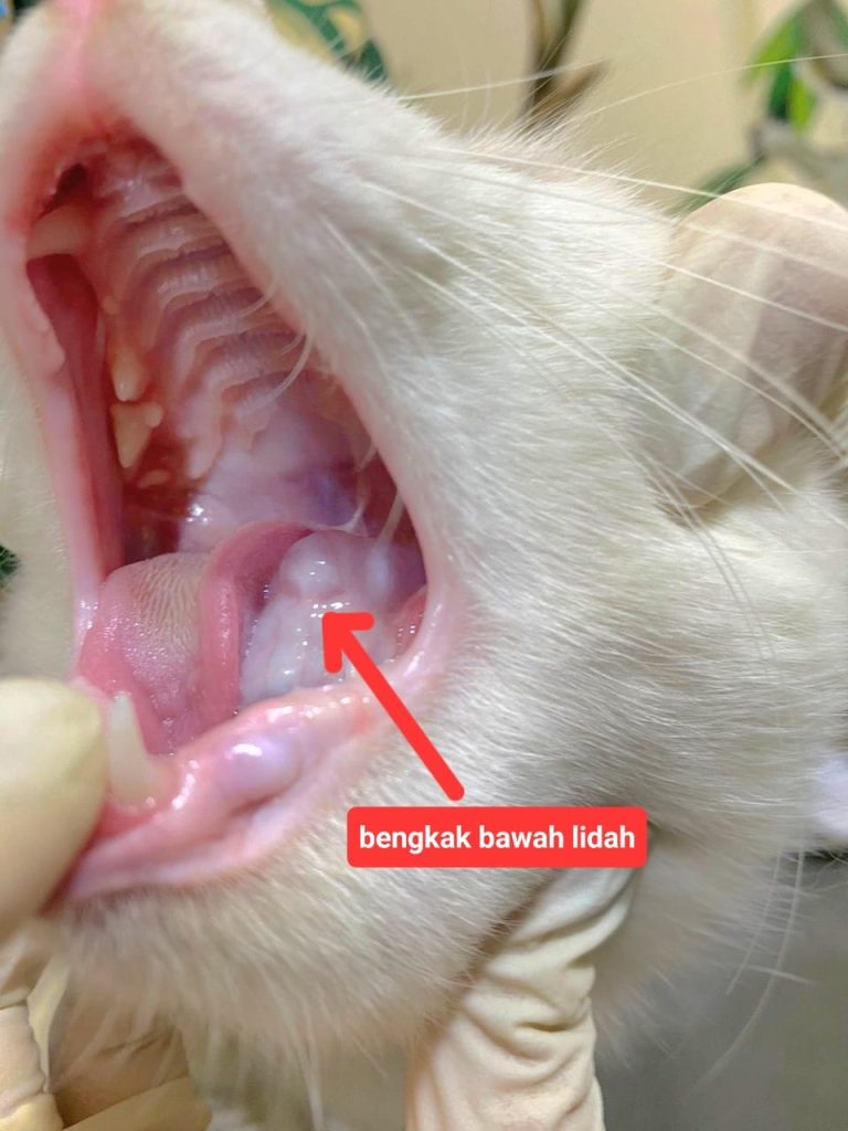 Jadi kucing tu macam ada belon berisi air bawah lidah yang sebabkan lidah tertolak keatas dan belon tu juga boleh menutup sebahagian salur pernafasan kucing.